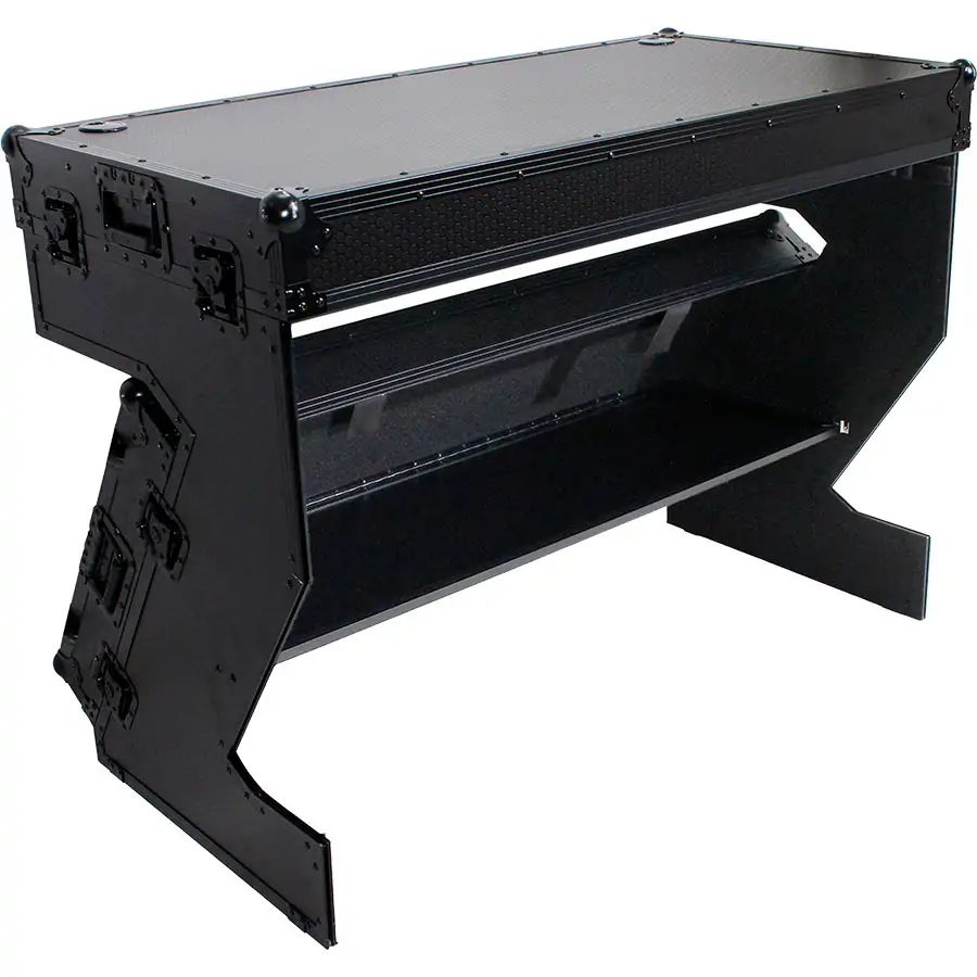 Stůl nabízí pracovní plochu o šířce 1200 mm, což poskytuje dostatek prostoru pro různé DJ sestavy, výšku 1 metr, nosnost až 90 Kg, dva otvory pro diskrétní průchod kabelů a nízkoprofilová kolečka usnadňující přepravu.